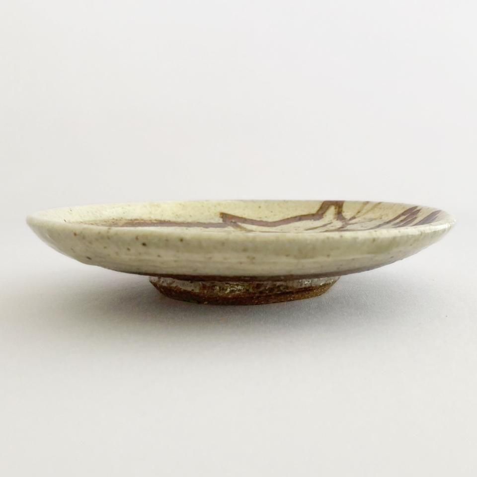 >四寸サイズの小皿に弁柄で猫や草花を描きました。